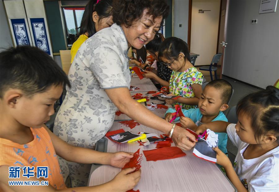 暑假期间,河北省香河县文化部门组织民间艺人向孩子们义务传授剪纸技艺,让孩子们感受传统文化的魅力,乐享假期生活。