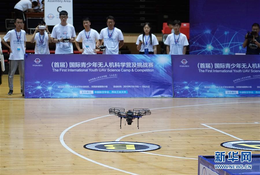 7月21日,参赛选手在比赛中降落无人机。 当日,由中国航空学会、西北工业大学主办的首届国际青少年无人机科学营及挑战赛在西安开赛,吸引了来自国内十几个省份的百名高中生,以及俄罗斯、匈牙利、马来西亚、泰国等国家的学生参与。 新华社记者 邵瑞 摄