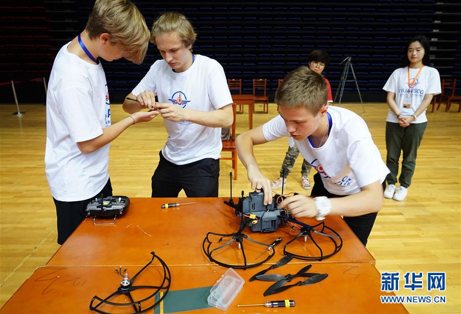 7月21日,来自俄罗斯的参赛选手在比赛中组装无人机。 当日,由中国航空学会、西北工业大学主办的首届国际青少年无人机科学营及挑战赛在西安开赛,吸引了来自国内十几个省份的百名高中生,以及俄罗斯、匈牙利、马来西亚、泰国等国家的学生参与。 新华社记者 邵瑞 摄