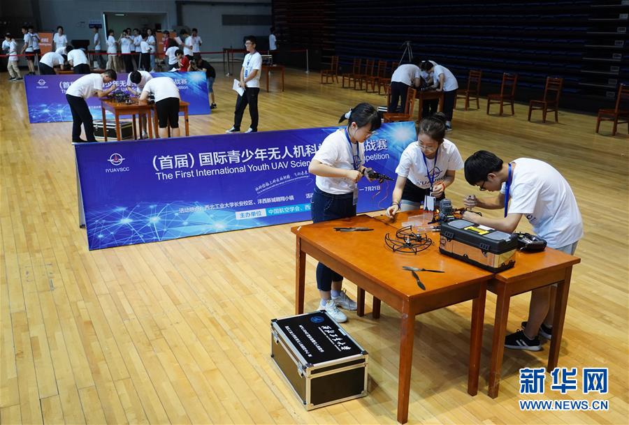 7月21日,参赛选手在比赛中组装无人机。 当日,由中国航空学会、西北工业大学主办的首届国际青少年无人机科学营及挑战赛在西安开赛,吸引了来自国内十几个省份的百名高中生,以及俄罗斯、匈牙利、马来西亚、泰国等国家的学生参与。 新华社记者 邵瑞 摄