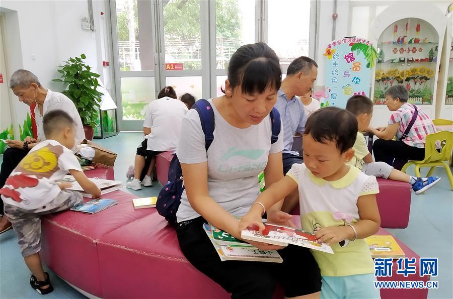 7月25日,在广州少年儿童图书馆里,家长在给孩子读绘本。 暑假期间,广州少年儿童图书馆迎来了人流高峰,不少小朋友来到图书馆里阅读书籍,丰富暑假生活。 新华社记者 卢汉欣 摄