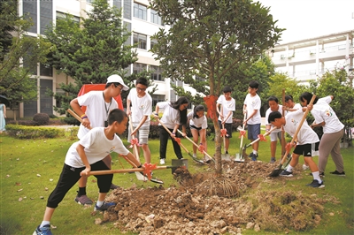 近日,2019“中国·东阳寻根之旅”夏令营落下帷幕。来自美国、加拿大、日本等地的26名浙江省东阳籍海外华裔和当地部分学生代表,在东阳市外国语学校种下了一棵友谊树,希望彼此间的友谊“长青”。胡扬辉 摄