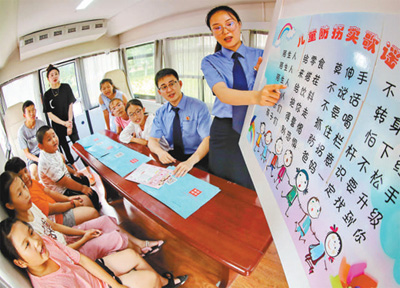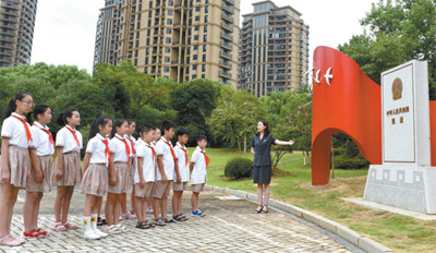 在江西乐平市天湖公园,法官向小朋友宣讲宪法知识。朱定文摄(人民视觉)