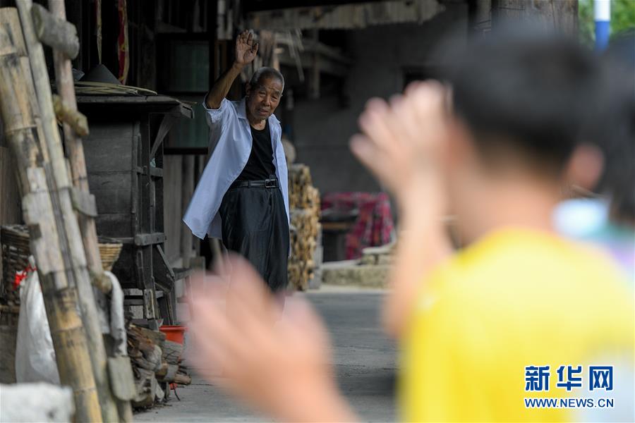 唐上君(左)与学生挥手道别(9月8日摄)。新华社记者 陈泽国 摄