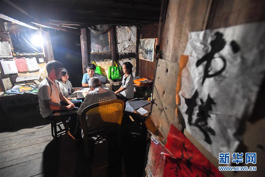 9月7日,唐上君在“书楼”里给学生们辅导功课。新华社记者 陈泽国 摄