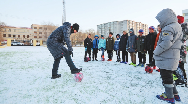 5日15时30分,距离哈尔滨市区20多公里的香和小学放学铃声响起,四年一班的朱梓航和几名同学迫不及待地换好足球鞋,迅速来到操场上进行足球运动前的热身活动。“训练前得先充分热身,冬天太冷容易拉伤。”朱梓航认真地对记者说。雪地足球,成为这座留守儿童占多数的学校最受欢迎的课后服务课程之一。