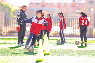 “传球注意脚形,带球抬起头来,射门把脚面绷直……”在呼和浩特市玉泉区石东路小学南校区的操场上,王宇忠、艾厚明的喊声和一群女孩跃动的身影冲破了冬天的寒意。两个大男孩儿和十几个小姑娘怀着如火的热情,共同追寻着属于自己的足球梦。