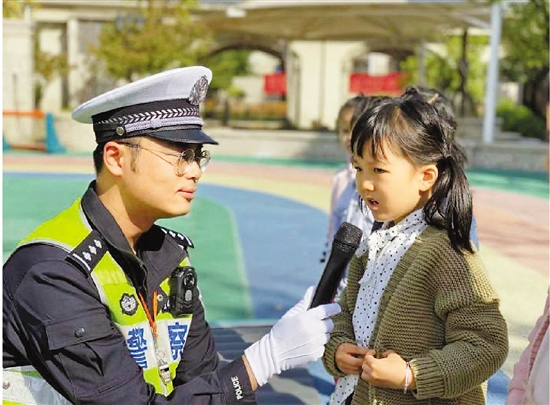 日前,嘉兴市交警支队交警带着“交通安全魔法箱”来到嘉兴市第一幼儿园,给美美班的学生们讲解交通安全知识,通过模拟交通情景互动让学生牢记过斑马线时的注意事项,做到“一看二慢三通过”。