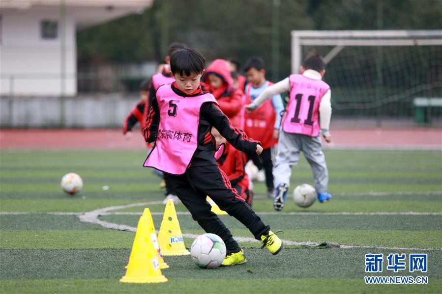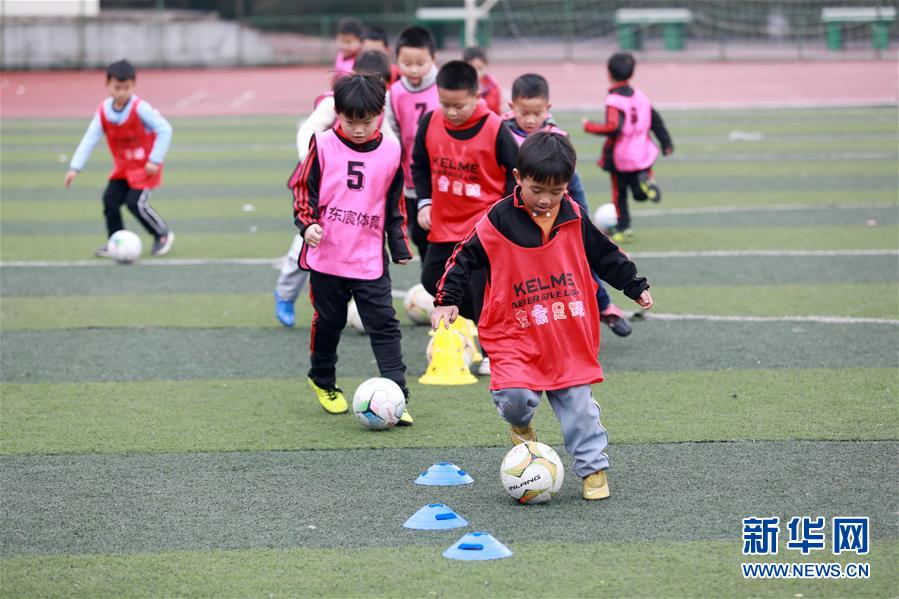 1月16日,在贵州省铜仁市玉屏侗族自治县印山民族小学,小球员在进行足球训练。 近年来,贵州省铜仁市玉屏侗族自治县大力发展少年足球运动,利用寒假时间开设足球课堂,吸引孩子们来到绿茵场参与足球训练,学习足球知识,享受运动的快乐。 新华社发(欧秀灯 摄)