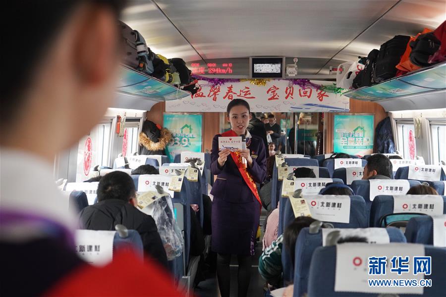1月19日,南京客运段“紫金心”志愿者在G106次列车上开展活动。 春运期间,中国铁路上海局集团有限公司南京客运段“紫金心”志愿者服务团队联合“宝贝回家”志愿者协会,在列车上开展“万家春运团圆路,紫金守护宝贝行”专项活动,向旅客们传递走失儿童信息,发动他们“线上线下”互动,普及儿童防走失知识,在列车上增设防走失儿童专用手环,增强家长的安全意识,守护孩子们平安回家。 新华社记者 季春鹏 摄
