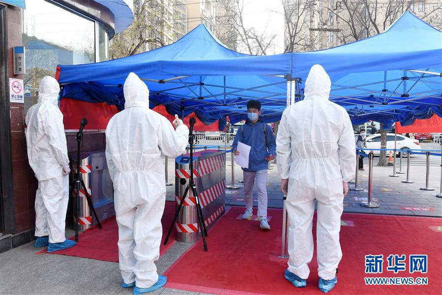 4月13日,郑州外国语中学初三年级学生在入校前测量体温。新华社记者 郝源 摄