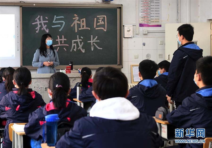 4月13日,在郑州外国语中学,初三年级学生在上开学第一课。新华社记者 郝源 摄