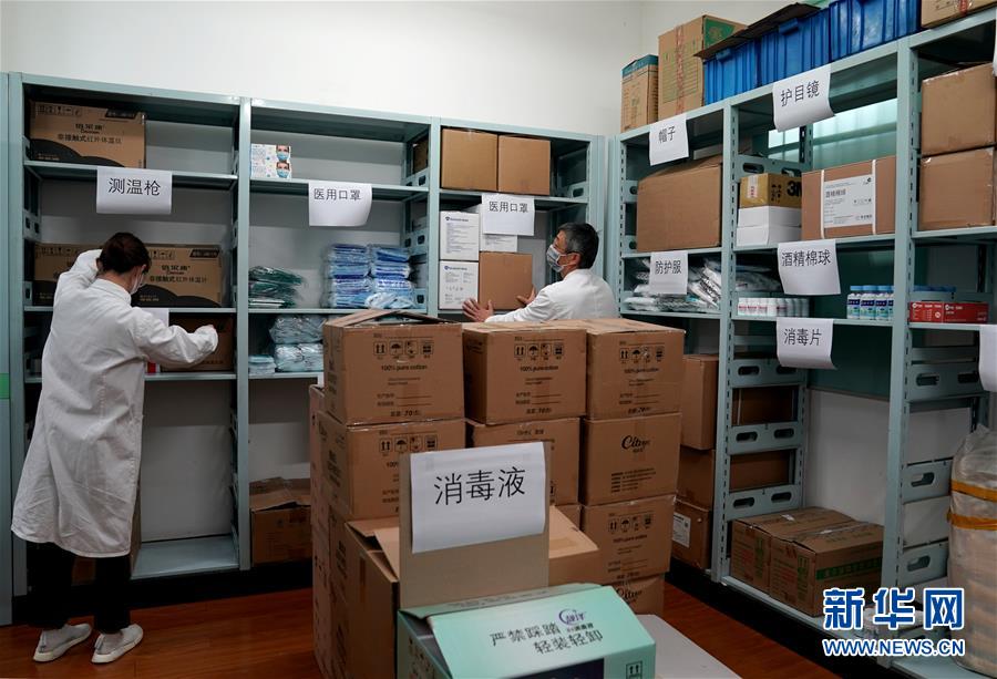 4月23日,华东师范大学校医院医护人员清点防疫物资。 近日,上海各高校开展返校开学防疫演练,在入校流程、校园管理、教学安排等方面细化措施,保障安全顺利开学。 新华社记者 刘颖 摄