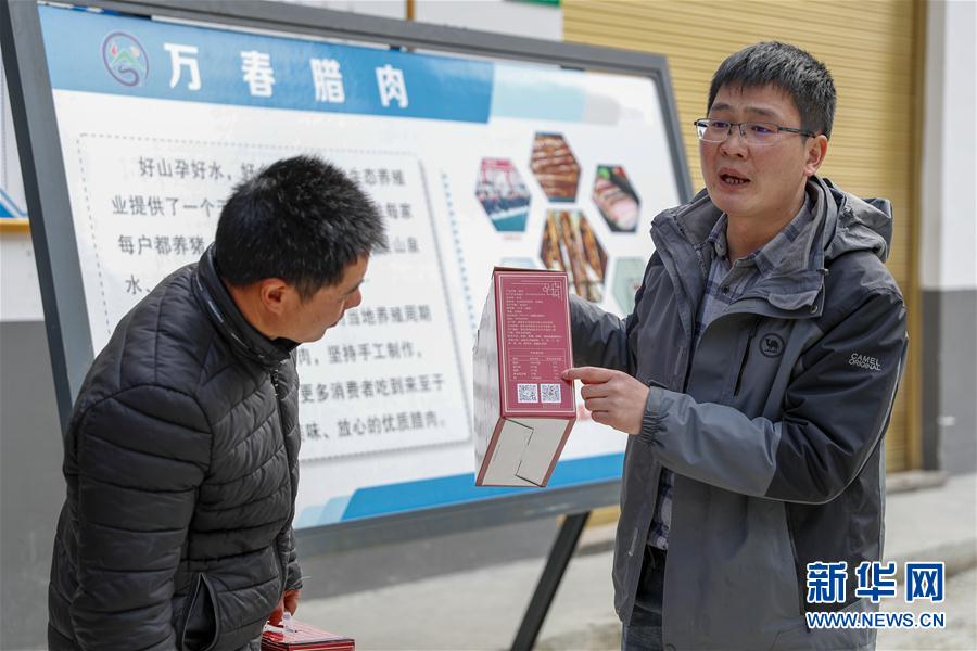 4月23日,在重庆市巫溪县天元乡万春村,乡村振兴学院天元乡分院的老师谭鹏昊(右)给全日制学历班村民讲解食品包装上应该标明的相关信息。 新华社发(黄伟 摄)
