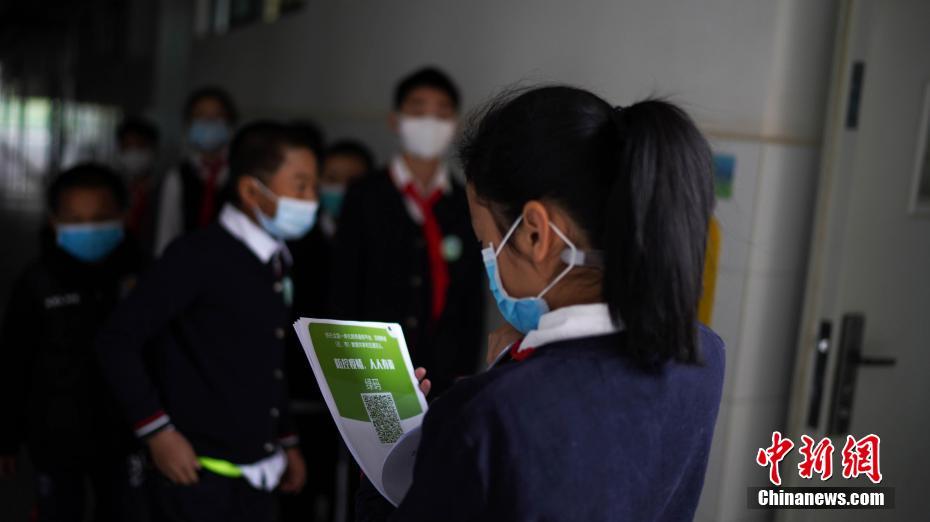 4月26日,一名学生拿着“健康码”。中新社记者 康平 摄