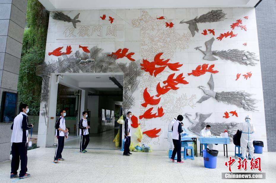 4月30日,湖北省武昌实验中学组织该校584名高三学生进行核酸和血清抗体检测,迎接即将到来的复学复课。湖北省新冠肺炎疫情防控指挥部此前发布通告,该省2020年高考时间为7月7日至8日;全省普通高中毕业年级(含中职学校和技工学校的毕业年级)学生5月6日统一开学。图为学生进行核酸检测。中新社记者 张畅 摄