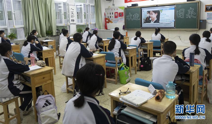 5月6日,湖北省武昌实验中学高三年级的学生在上课。 当日,武汉首批121所学校高三年级正式复学,学生返校上课。据了解,开学前,所有校园均开展了卫生清洁和预防性消杀工作,所有学生返校前须进行健康检测。 新华社记者 熊琦 摄