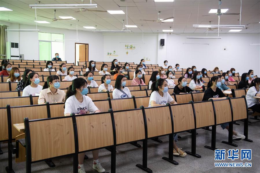 5月8日,在湘潭医卫职业技术学院教学楼,学生们在上课。 当日,湖南省部分高校开学复课。 新华社发(陈思汗摄)