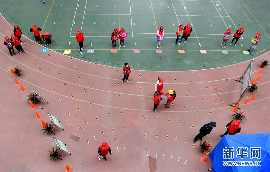 5月11日,在郑州市纬一路小学,学生在志愿者引导下有序进入校园。 当日,河南省郑州市小学各年级开学复课。 新华社记者 郝源 摄