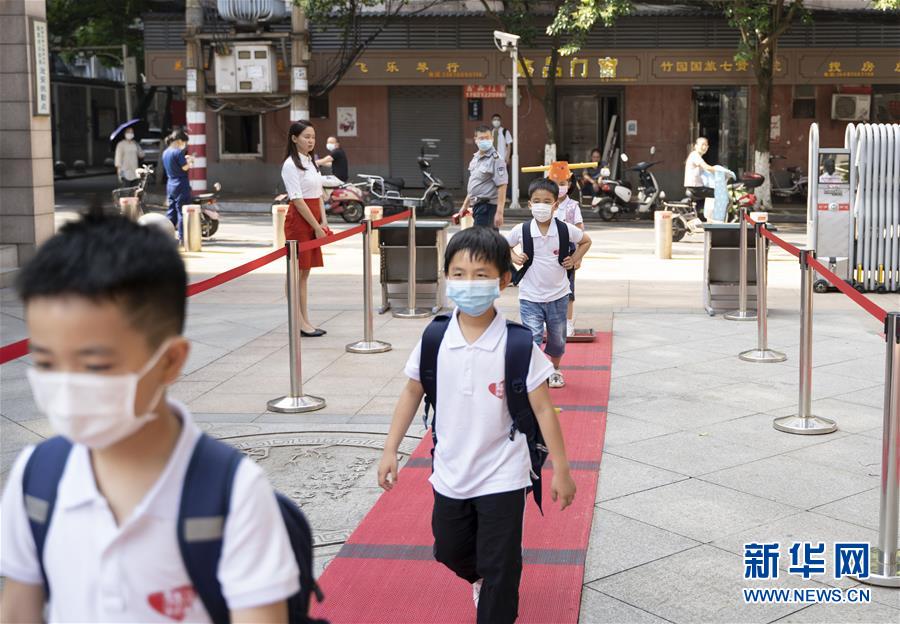 5月18日,南昌市东湖小学的学生们有序进入校园。 当日,江西省南昌市各小学全面返校复课。 新华社记者 张浩波 摄