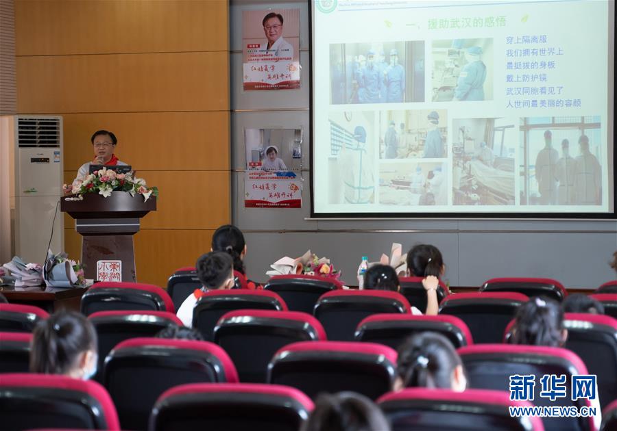 5月18日,在南昌市东湖小学,江西援鄂医疗队成员在给学生们讲授“开学第一课”。 当日,江西省南昌市各小学全面返校复课。 新华社记者 张浩波 摄