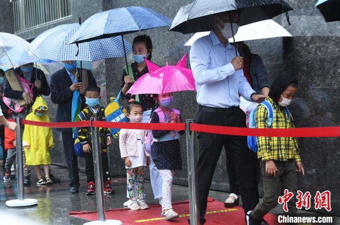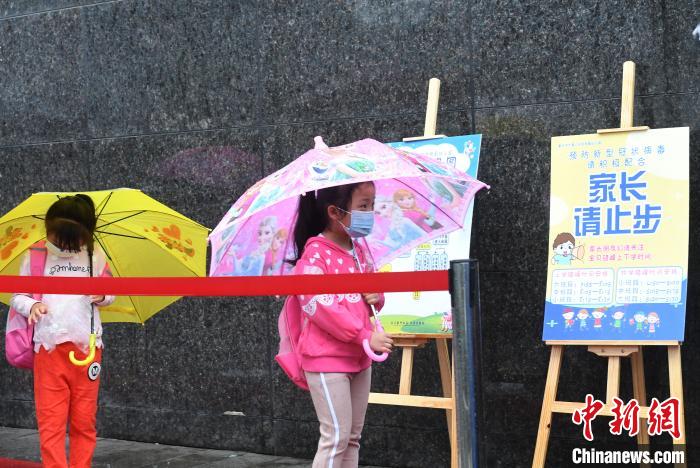 图为学生们有序排队进入校园。 陈超 摄