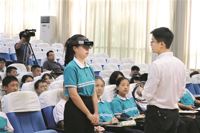 “以前的课堂,都是老师在上面讲,我们在下面看幻灯片。而现在有了这些新技术,我们有了更多自主学习的空间,就可以去主动探索学习了。”