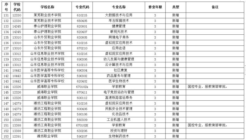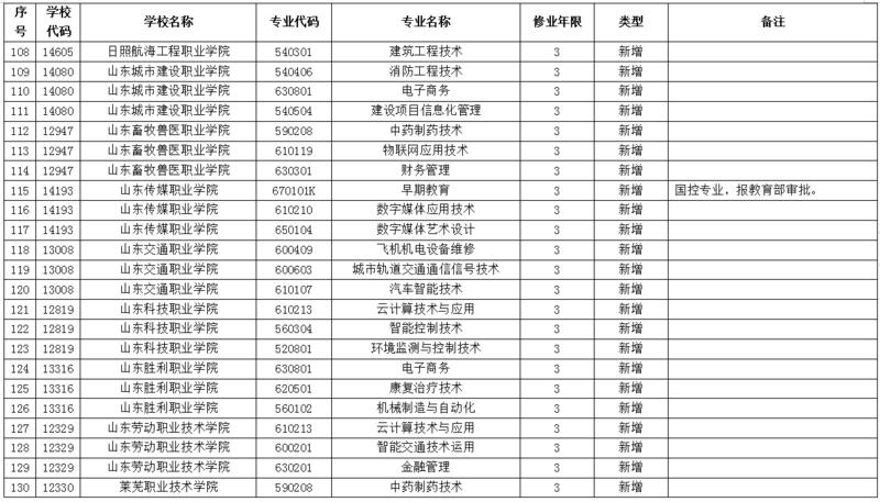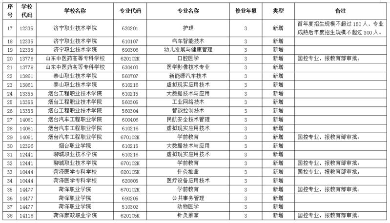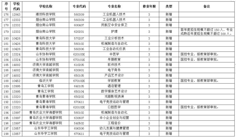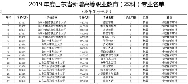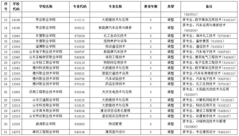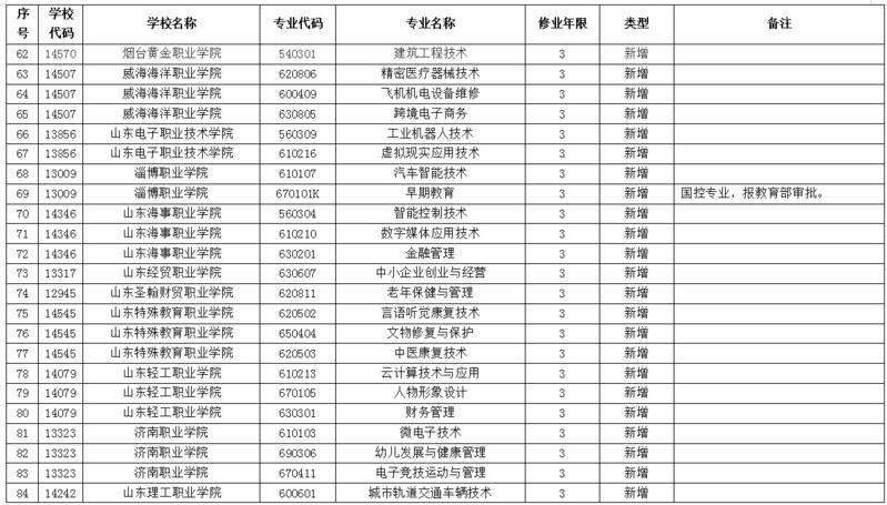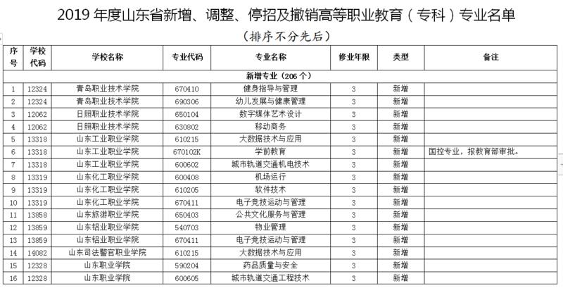 (二)各高职院校在专业设置管理平台填报的专业范围是,《2019年度山东省新增、调整、停招和撤销高等职业教育(专科)专业名单》(附件1)、《2019年度山东省新增高等职业教育(本科)专业名单》(附件2)中的新设和调整专业,以及《山东省2019年高等职业学校(专科)拟招生专业情况表》(不再印发,直接提供给各相关学校)中的专业。
