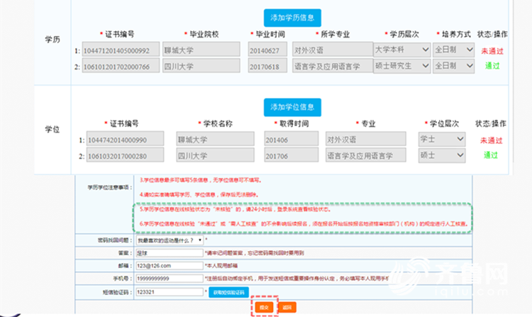 考试中心工作人员贾鹏鹏向记者介绍,“我们的系统跟学信网进行了联网,系统对2002年至今大专以上(含大专)的学历信息、2008年9月至今的学位信息进行在线核验。核验通过的考生可以直接完成资格核验,无需到现场进行人工审核。”