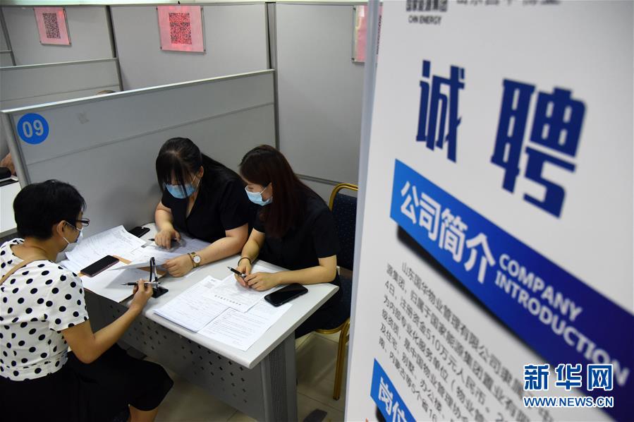 7月2日,外来务工人员在济南市外来务工人员综合服务中心参加现场招聘会。 当日,山东省济南市外来务工人员综合服务中心在做好防控疫情的基础上恢复现场招聘活动。 新华社记者 王凯 摄