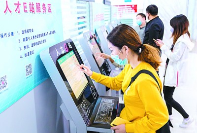 5月20日,内蒙古“2020年高校毕业生百日攻坚现场招聘会”首场招聘会在呼和浩特举行。丁根厚摄/光明图片
