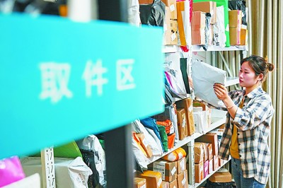 90后大学生孙延婷在家门口创业,开办一家菜鸟快递驿站,为社区居民免费保管、分发快递。新华社记者 李博/摄