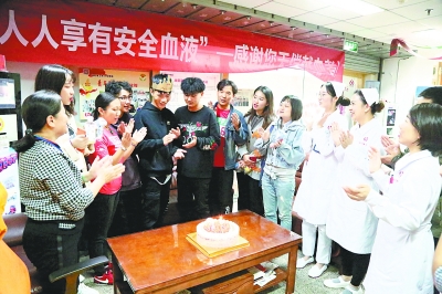 血液中心医护人员和老师同学父母一起给肖盛辉过生日