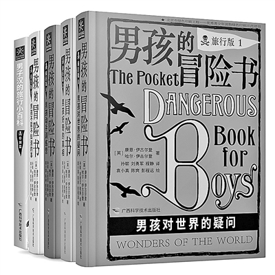 《男孩的冒险书》中文版曾入选清华附小寒假必读书单。作为这个系列中的最新一版,《男孩的冒险书(旅行版)》较以往的版本有更多创新。首先,书的大小就很不同,旅行版袖珍了许多,可以装到背包里,随时随地翻出来看上一段;其次,书中的内容有更多扩充,增添了许多孩子(包括女孩子)感兴趣的历史事实;再其次,外观上美了许多,新增了许多插图、步骤图,相比之前买过的大本全彩版,图片也有了更新换代;最后,旅行版除了原本的四册,还赠送了一册《男子汉的旅行小百科》,由《环球科学》执行主编褚波等写就,配合另外四册罗列了许多相关的旅行地,可以带着书有目的地去旅行,边走边看。即使已经购入了《男孩的冒险书(全彩版)》,再收一套旅行版依然觉得物有所值。