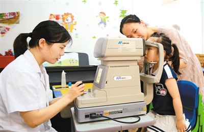 近年来,随着儿童、青少年近视率不断攀升,如何有效预防近视、爱眼护眼已经备受关注。江西省吉安市吉水县组织专业的医疗筛查队伍近日来到学校、幼儿园,为儿童提供视力等检查,并对儿童眼健康情况进行建档。廖 敏摄