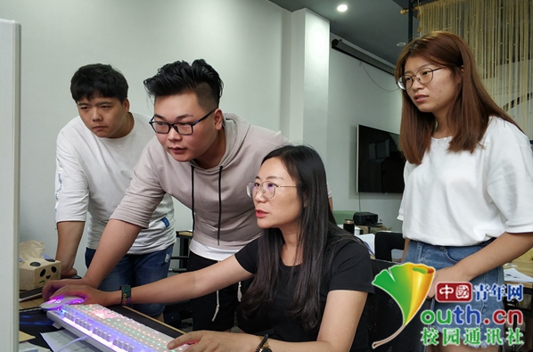 王晴晴正在给学生们进行课题指导。中国青年网通讯员 杨晖 摄