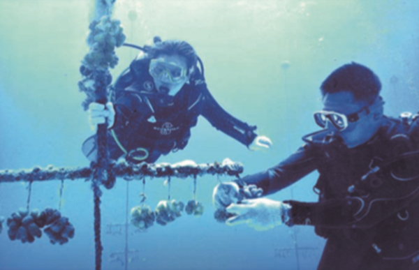 与王敏一同上台领取“年度感动人物”奖的还有一位美丽的女科学家——黄晖。与珊瑚为友,与虾贝为伴……她潜水近三十年,科学考察了我国辽阔的东南海域,在国内首次实现了珊瑚人工幼体培育。目前,黄晖在西沙群岛和南海南部共建立300亩珊瑚礁修复示范区,可培育珊瑚断枝4万株。