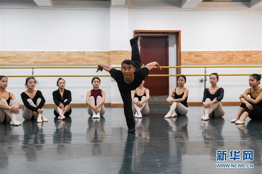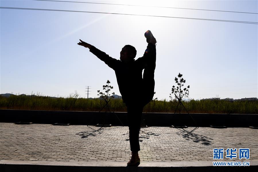 4月26日,在包头师范学院,刘子青(前)在展示舞蹈动作。 在包头师范学院舞蹈系,有一名特殊的学生——59岁的农民刘子青。每周,他都会和学生们一起学习舞蹈,同学们也亲切地称呼他为“刘大爷”。 刘子青是内蒙古自治区包头市石拐区公益店村村民,从小就喜欢舞蹈,但由于家里条件不允许,一直没有机会进行系统的学习。2012年,52岁的刘子青在电视上看到教授舞蹈基本功的节目后,他下定决心自学舞蹈基本功,追逐儿时的舞蹈梦想。劈叉、下腰、搬腿等动作,刘子青每天练习5个多小时,这一坚持就是7年时间。 2018年9月,包头师范学院舞蹈系得知刘子青的故事后,招收他为免费“旁听生”。现在,刘子青不仅能轻松做到横叉、搬前腿等动作,在老师们的训练下还能跳上一段舞蹈。刘子青说:“跟着这群20来岁的孩子一起学习,我感觉自己也年轻了不少。” 新华社记者 刘磊 摄