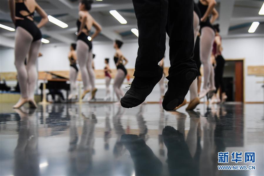 4月26日,在包头师范学院,刘子青和同学们一起练习舞蹈动作。新华社记者 刘磊 摄