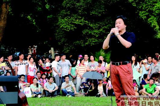 ▲2015年毕业季,李炜教授在中山大学草地音乐会上为学生演唱。受访者供图