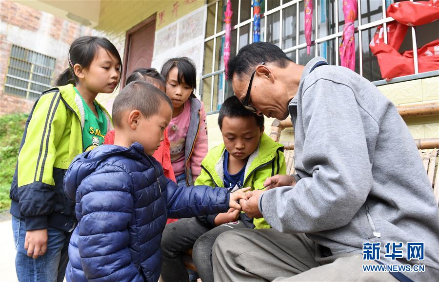 5月28日,周宏军老师课间给学生剪指甲。新华社记者 陆波岸 摄
