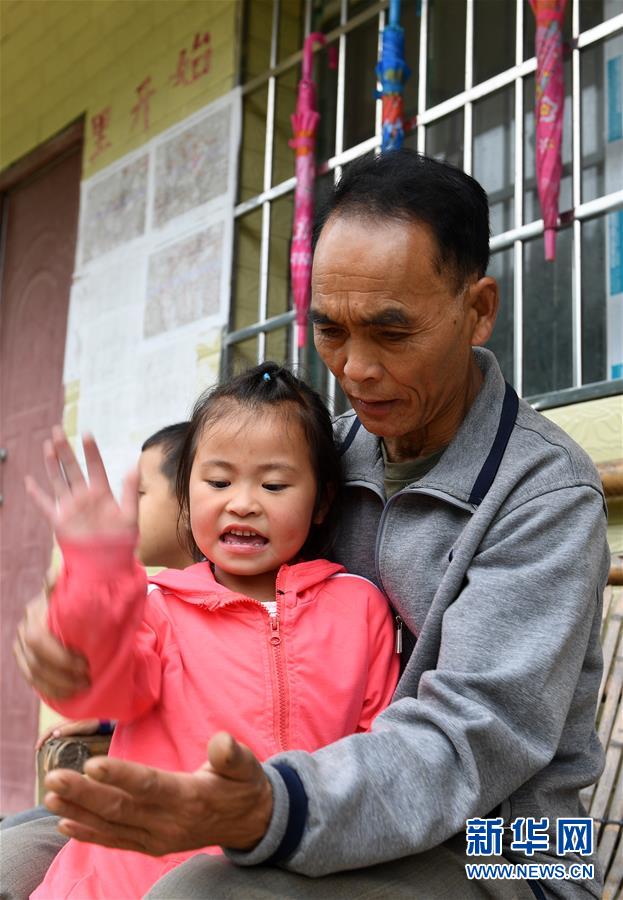 5月28日,周宏军老师课间和学生一起做游戏。 新华社记者 陆波岸 摄