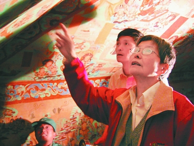 2004年5月,在莫高窟第85窟壁画修复现场检查工作