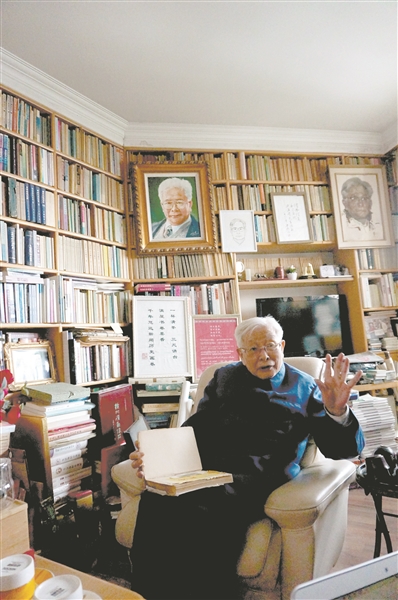 方汉奇在家中接受本报记者采访。邓绍根 摄