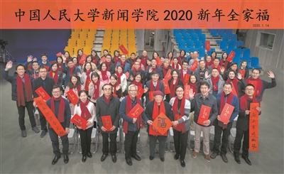 2020年1月,方汉奇(前排正中)在人大新闻学院与教师合影。李俊伟 摄