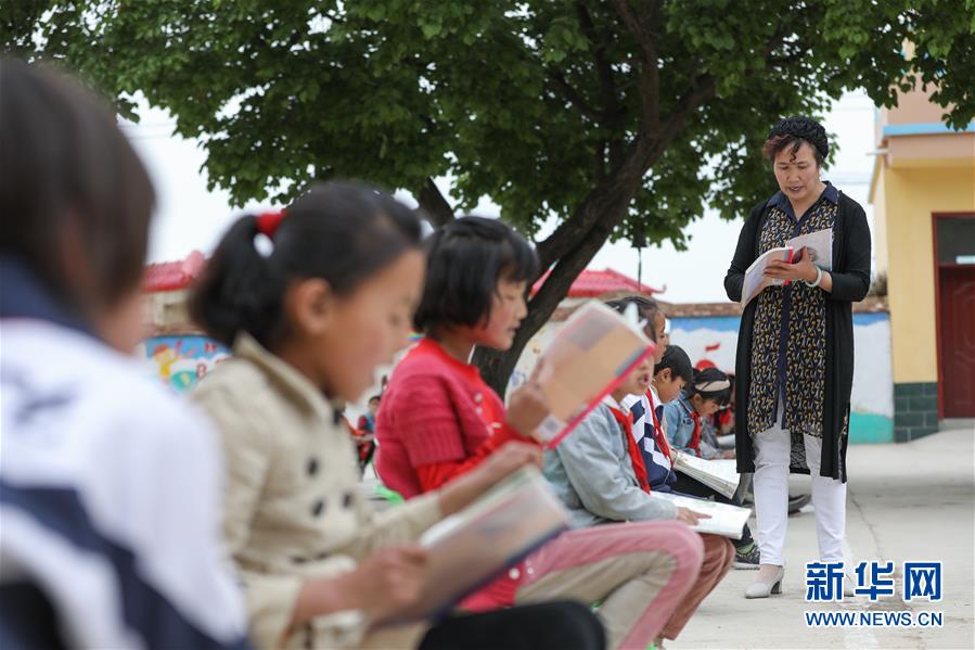 6月1日,在乔鲁小学院子里,学生们在上读书课,马翠花指导学生阅读。 西北乡村的一座山头,孤零零地伫立着一所小学。学校名叫乔鲁小学,位于甘肃省临夏回族自治州东乡族自治县大树乡,始建于1963年。 校长唐金海和妻子马翠花都是全科教师。夫妻俩来到乔鲁小学后,一待就是15年。在当地政府的支持下,夫妻俩不断努力,推动了控辍保学、净水计划等政策在乔鲁小学一一落实。 如今,学校面貌发生了翻天覆地的变化。目前,学校共有4个教学班,在校生63人,教职工6人。最初的三间破旧教室变成了两栋教学楼;学校女学生从最初只有2名到如今的35名,占在校生一半以上。 如今,他们依然坚守,步履不停。他们只有一个心愿:“孩子们好好学,早日走出大山!” 近年来,东乡族自治县积极落实国家政策,着重推进控辍保学、“东乡女童希望工程”等工作,并积极加强教师队伍建设,有力提升当地教育教学质量。 新华社发(马希平 摄)