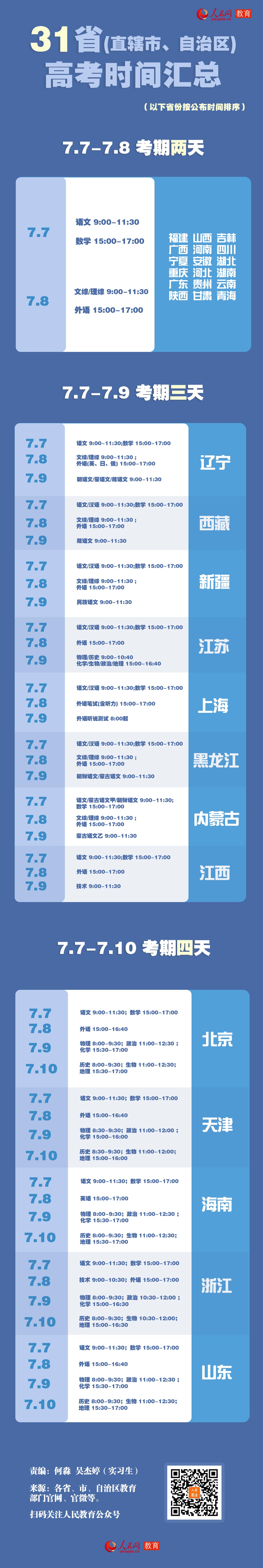 31个省区市高考时间、科目汇总来了!请查收!