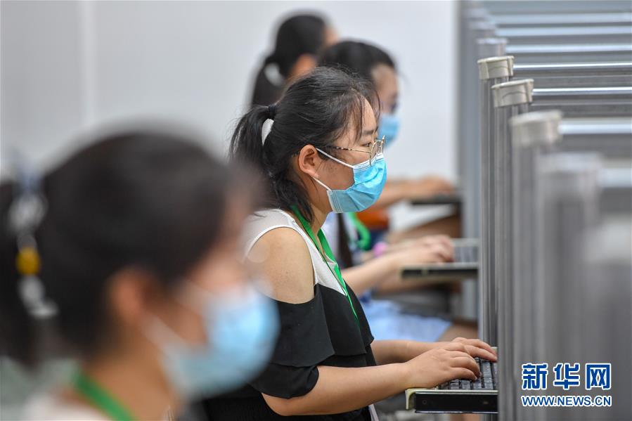 7月16日,在东北师范大学,工作人员在进行阅卷。 当日,吉林省2020年高考阅卷工作向媒体开放,接受社会监督。2020年吉林省高考阅卷工作全部采用电子扫描、网上阅卷方式进行,共有一千余名工作人员参与阅卷。 新华社记者 张楠 摄