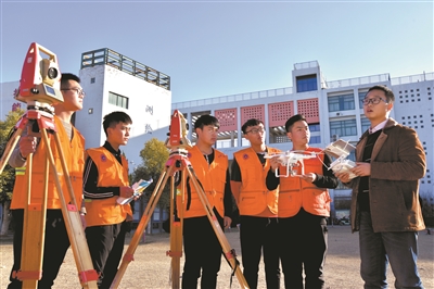 高职院校学生在进行测绘实训,锻炼实践技能。黄河水利职业技术学院 供图