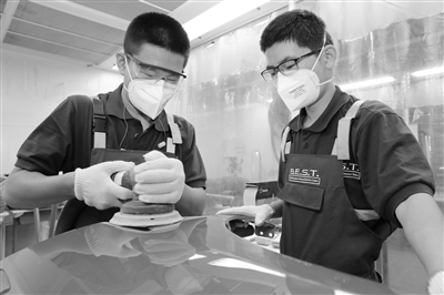 昌平职业学校学生在BEST北京培训基地练习钣金和喷漆技术。